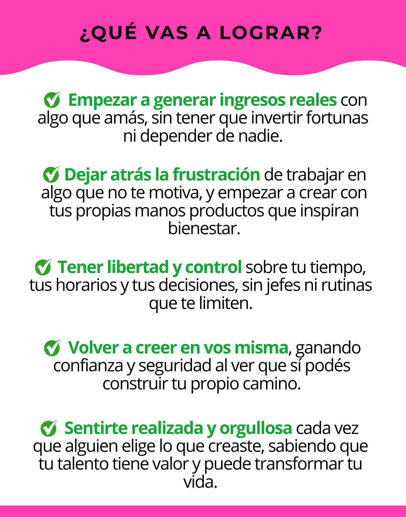 ✨ Ideal para crear desde casa, para tu propio uso o para arrancar (o escalar) tu emprendimiento artesanal con bases sólidas.